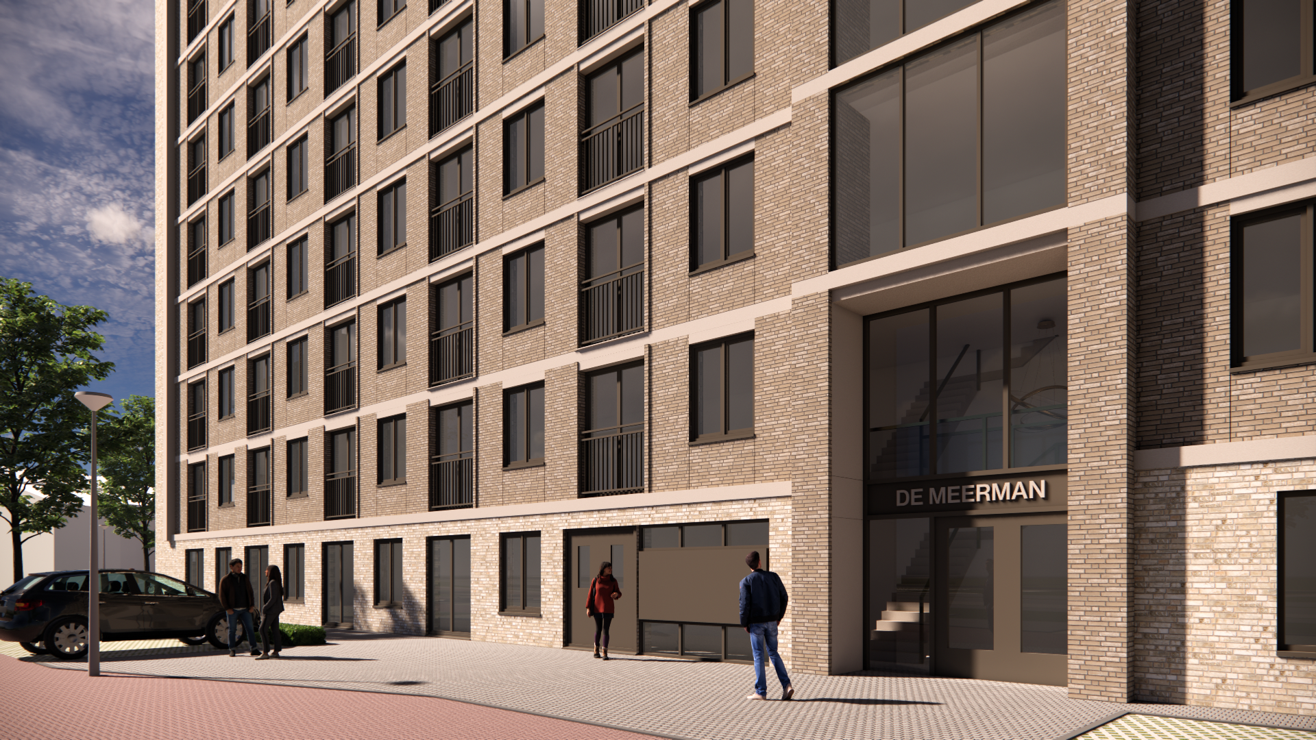 Het woongebouw aan de Meermanstraat 2 t/m 112 (even) maakt plaats voor een nieuw, gasloos woongebouw met 60 2- en 3-kamerappartementen. Het gebouw krijgt 8 bouwlagen.