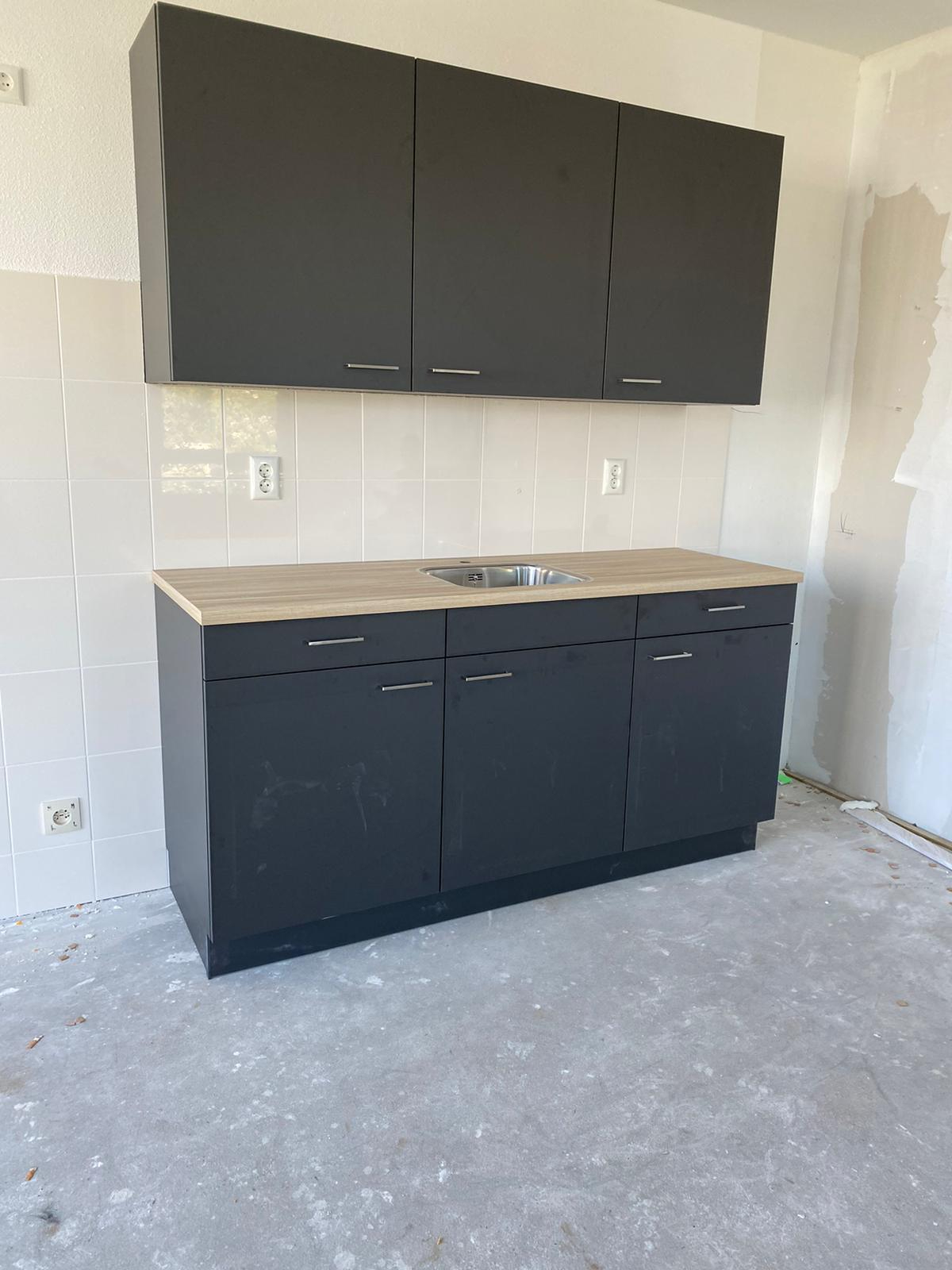 Hierboven de keukenopstelling aan de Cornelis Trompweg. Nog wel zonder kraan.