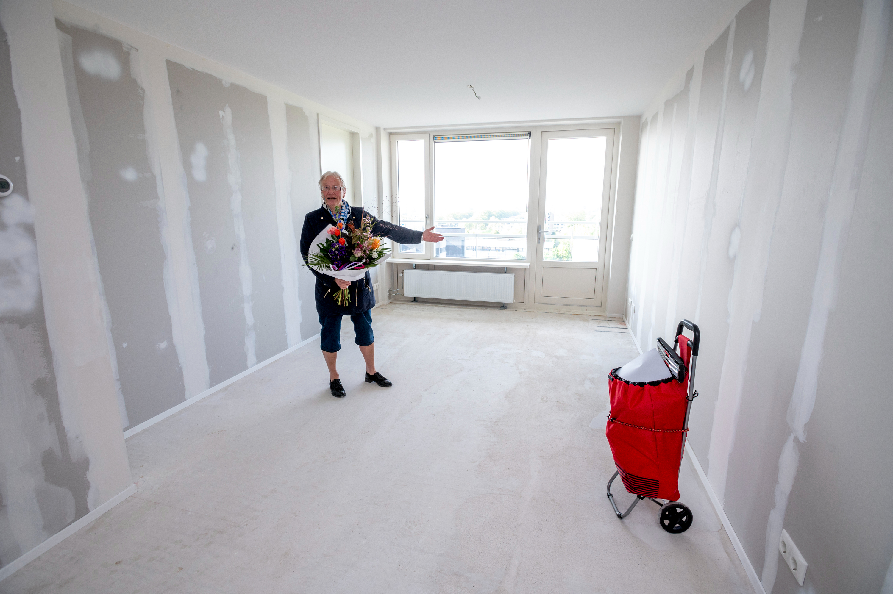 Op dinsdag 4 oktober kreeg mevrouw Van Trierum de sleutel van haar nieuwe appartement in De Anjer van verhuurmakelaars Natasja Bolleboom en Robert van Eijk. Na 2 jaar elders gewoond te hebben, verhuist zij terug naar het woongebouw in Rotterdam-IJsselmonde. In feeststemming, zegt ze zelf.