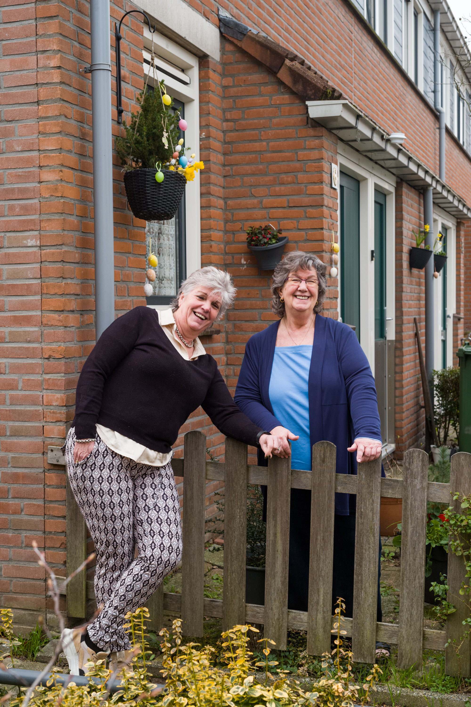 De hanging baskets zorgen voor een gezellige sfeer. "Absoluut", zegt Riet. "We laten ook steeds een thema erin terugkomen, zoals met Kerst of Pasen. Met Pasen doen we gele bloemen in de mandjes. Lekker fleurig. Het zijn stevige mandjes dus die gaan lekker lang mee. Ook organiseren we andere buurtactiviteiten, waaronder een zomerbarbecue en een brunch met de Paasdagen. Gezelligheid moet je zelf maken!"