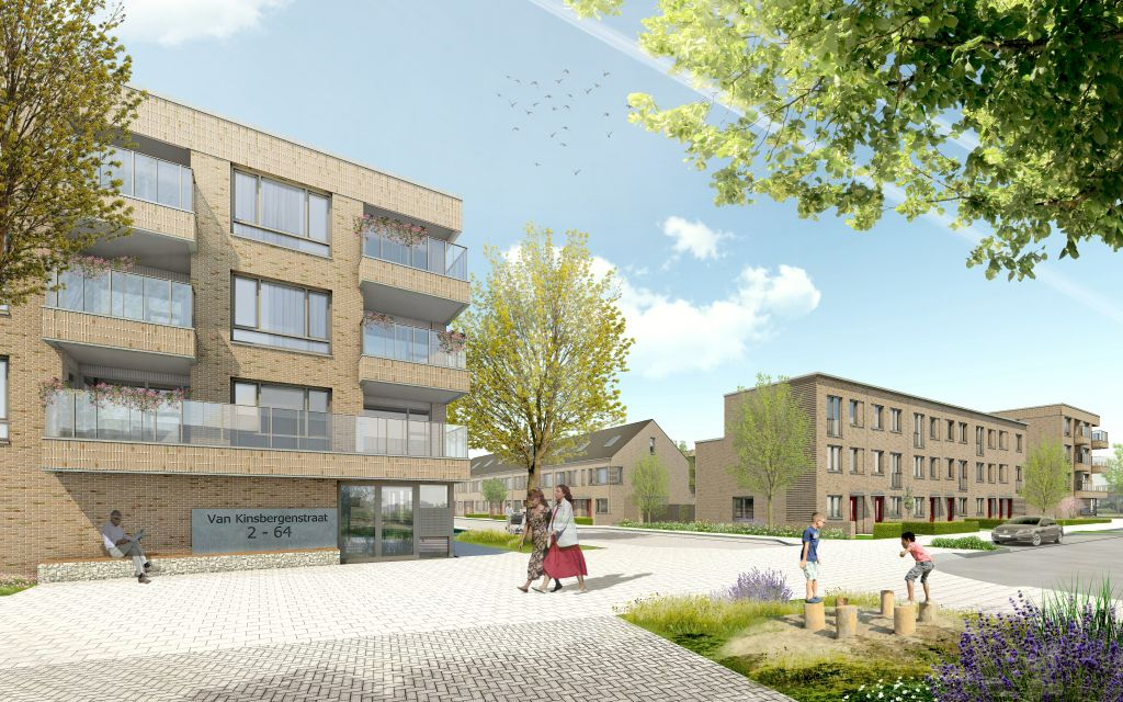 Aan de Van Kinsbergenstraat en de Cornelis Trompweg in Dordrecht staan nu 64 appartementen en 16 eengezinswoningen.