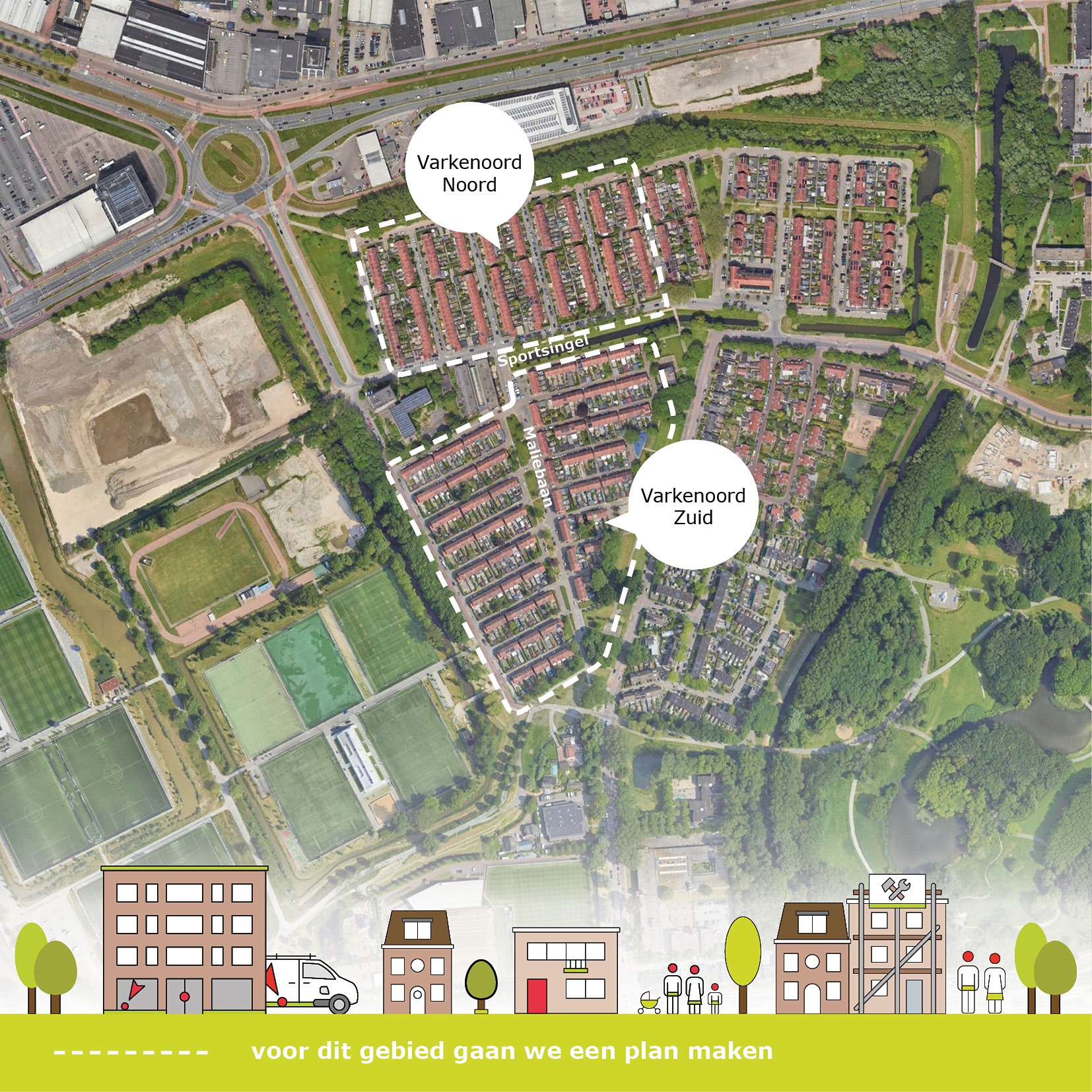 Sportdorp is een fijne buurt. Dat komt door de goede ligging, het groen en de ruime opzet. Ook vanuit historisch oogpunt is Sportdorp waardevol. Deze kwaliteiten willen we graag zo houden. We gaan met bewoners en de gemeente in gesprek om de te bekijken wat er nog beter kan in de buitenruimte en qua voorzieningen.